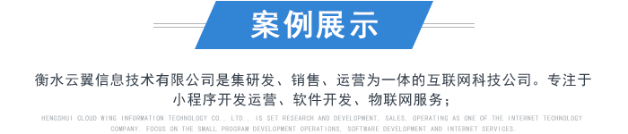 衡水云翼信息技術有限公司是集研發(fā)、銷售、運營為一體的互聯(lián)網科技公司。專注于小程序開發(fā)運營、軟件開發(fā)、物聯(lián)網服務。
